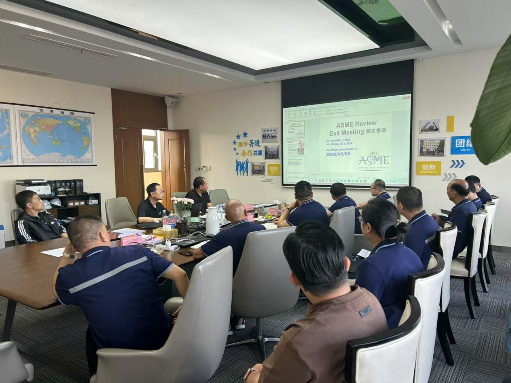 С момента получения компанией в 2016 году сертификата ASME U, она неукоснительно следует нормам ASME для котлов и сосудов под давлением, углубляет свою деятельность в сфере производства сосудов под давлением и постоянно совершенствует систему управления качеством. В ходе экспертизы группа специалистов посетила производственные площадки, провела проверку всего процесса изготовления сосудов под давлением на месте, тщательно осмотрела ключевые этапы, такие как сварка изделий, выполнение технологических процессов и контроль качества, уделив особое внимание подтверждению высокой степени соответствия производственного процесса стандартам ASME; после чего было проведено заключительное совещание ASME Review Exit Meeting, в ходе которого были всесторонне рассмотрены документы системы качества компании, технологические процессы проектирования, контроль материалов, записи о неразрушающих испытаниях и другие записи по всему процессу, а также проведена строгая оценка эффективности и соответствия требованиям системы.